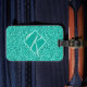 Etiqueta De Bagagem Grelha Espelhada Turquesa Azul Luminoso Monograma