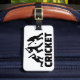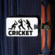 O jogador do jogo do grilo ostenta o jogador de cricket cruzado bastões da bola do wicket da equipe