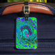 Etiqueta De Bagagem Groovy Abstrato com espiral verde e azul