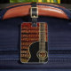 Um padrão de notas musicais em um fundo texturizado de tons quentes acentua a silhueta preta de guitarra que dispara o primeiro plano desta design. Personalize com seu próprio nome e/ou outro texto ao contrário.