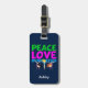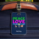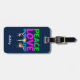 Bonito presente de bagagem da Peace Love Gymnastics para uma pequena ginasta que adora tropeçar! 3 crianças diferentes fazendo diferentes truques de ginástica abaixo das palavras em bonito néon rosa, verde e azul. Personalize-as para colocar suas malas antes de ir para suas competições.