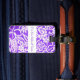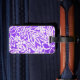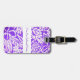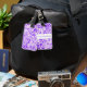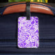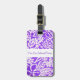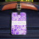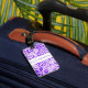 Etiqueta de bagagem personalizada mostrada com um impressão de hawaiano cor roxa e giro com texto. Personalize esta etiqueta ou comprar como está.