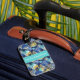 Estou na ilha, a etiqueta de bagagem personalizada mostrada com um impressão havaiano muito tropical com texto. Personalize esta etiqueta ou comprar como está.