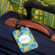 Etiqueta de bagagem personalizada mostrada com um impressão havaiano muito tropical com texto Aloha. Personalize esta etiqueta ou comprar como está.