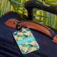 Etiqueta de bagagem personalizada mostrada com um impressão havaiano muito tropical com texto. Personalize esta etiqueta ou comprar como está.