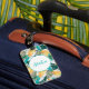 Etiqueta de bagagem personalizada mostrada com um impressão havaiano muito tropical com texto Aloha. Personalize esta etiqueta ou comprar como está.