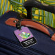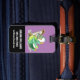 Etiqueta De Bagagem Ilustração De Um Plateossauro Jogando A Harpa.