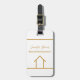 Esta etiqueta de bagagem moderna do corretor é personalizada com o nome da sua empresa real sob o nome do agente na tipografia quic. Este manto de ouro e branco minimalista apresenta um simples desenho de linha de uma casa. presente de excelente para seus agentes imobiliários.