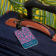 Etiqueta de bagagem de impressão de bloco floral retro moderna com nome na frente. Adicione seus próprios detalhes de contato no verso. Itens correspondentes disponíveis. Arte original de ilustrações próprias de artistas. Por favor, use o botão de mensagem abaixo para obter ajuda com personalização adicional e solicitações especiais. © Zoe Chapman Design