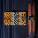 Impressões do tema do safari; leopardo, chita, zebra, e tigre no fundo e em tiras telhadas