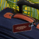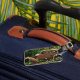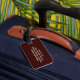Faça sua bagagem se destacar em um carrossel do aeroporto com designs únicos! Esta etiqueta de bagagem apresenta uma jalopia de lixo deixada para ferrugar na floresta. Está cercado por árvores verdes e flores silvestres brancas. Há uma certa beleza e dignidade a este velho e enferrujado carro laranja, castanho e azul. Personalize o texto no verso com suas informações pessoais.