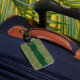 Etiqueta De Bagagem Laço dourado da folha no fundo verde