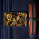 Sem costura, metal, latão, engrenagens douradas sobre fundo escuro enferrujado. Estilo Steampunk.
