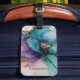 Etiqueta De Bagagem Lindo Floral Azul Aqua Roxo Dourado