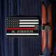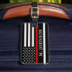 Etiqueta fina de bagagem vermelha - bandeira americana em cores de bandeira do bombeiro, design preto moderno. Personalize com o nome do bombeiro ou nome da família. Esta etiqueta personalizada de bagagem de bombeiro é perfeita para os bombeiros e as famílias dos bombeiros e para todos aqueles que os apoiam. COPYRIGHT © 2020 Judy Burrows, Black Dog Art - Todos Os Direitos Reservados. Etiqueta de Bagagem de Linha Vermelha Fina Personalizada pelo Bombeiro