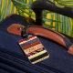 Faça sua bagagem se destacar em um carrossel do aeroporto com designs únicos! Esta bela etiqueta de bagagem apresenta uma prateleira de livros coloridos. Eles formam um interessante padrão geométrico abstrato vertical em cores de amarelo, vermelho, azul, preto e rosa. Personalize o lado inverso com suas informações pessoais.