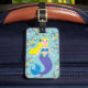 Etiqueta De Bagagem Loira Nadando Sereia Rapariga Bolhas Oceano