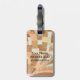 Etiqueta de bagagem laranja e azul com abstrato de montanhas e a lua. Personalize o lado inverso com seu nome, número de telefone e e-mail.