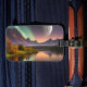 Lua pendurada sobre a paisagem montanhosa com Aurora Borealis refletida na água Autumn tree AI Art criada por minx267