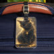 Magical cat luggage tag. This designs features a glittering, fantasy cat. In shades of gold this is a truly beautiful cat design. This luggage gift would be perfect for any cat moms, cat lovers or anyone who loves fantasy design. Personalise on the reverse, ensuring all your details you want can be added.