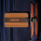 Etiqueta De Bagagem Mahogany Wood And Brown Leather Texture Monogram