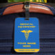 Alça médica personalizada com cuidado Etiqueta de bagagem com caduceus medicinal em azul e amarelo. É perfeito para qualquer pessoa que transporte equipamentos médicos, para médico, profissional de saúde ou diabético. O identificador perfeito para mostrar na sua bagagem e fazer com que todos lidem com cuidado. Este rótulo de alerta médico manterá seu equipamento médico fácil de identificar.