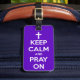 Etiqueta De Bagagem Mantenha a calma e Pray no roxo