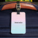 Etiqueta De Bagagem Mão Azul Rosa com Linhas Douradas