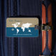 Um design excelente para identificar seus pertences. O mapa do mundo em um fundo meio azul / meio bege