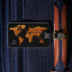 Legal imagem do mapa do mundo em um olhar de madeira, para personalizar com seu nome e número de telefone... Uma maneira inteligente de fazer sua bagagem se destacar em uma multidão... porque todos parecem viagem com uma mala preta