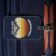 Este pôr do sol laranja legal sobre montanhas rochosas na natureza faz uma imagem excelente para uma etiqueta de bagagem azul de marinho personalizada para uma reunião familiar, viagem de ida e volta ou férias de verão no exterior.