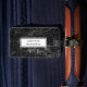 Uma etiqueta de bagagem elegante, com um retângulo branco de duas bordas sobre uma imagem de fundo de mármore preto. Personalize-o com o seu nome na fonte branca sans serif. Reverter apresenta o seu nome e informações de contato em branco sobre um fundo preto.