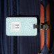 A etiqueta de bagagem monofilizada é uma tomada de pastel mais suave na tendência da impressão animal, com um padrão de impressão verde-menta-pálida e leopardo-branco. Personalize com o seu monograma inicial e nome na frente e adicione as suas informações de contato no verso em letras brancas num fundo de carvão profundo contrastante.