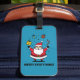 This luggage tag design brings the joy of Christmas to your travels. The design features a cartoon Santa Claus juggling gift boxes on the "MERRY EVERYTHING" text.