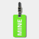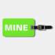 Esta etiqueta verde brilhante diz tudo! Diz "minha" na frente alto e claro em branco contra o fundo verde. Você pode personalizar facilmente a parte de trás desta mala engraçada com seus detalhes necessários.