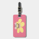 Tag personalizado bonito da bagagem dos miúdos com uma abelha de sorriso feliz que está nas mãos de uma abertura da flor para um abraço no fundo cor-de-rosa. Esta abelha bonito personalizada é apropriada para meninas.