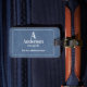 Classic design featuring white lettering on light blue jean denim print on this minimalist travel luggage tag. Easily change or remove initial, name, location, to make it yours using the Template provided. This is a 2"x3.5" (standard business card size) quality, sturdy and weatherproof luggage tag with a leather strap. For yourself or a thoughtful gift for someone special, this is also ideal for laptop bag, backpack, attaché-briefcase or gym bag. The back is white; you can add color, text and/or a photo using the easy Design Tool, if you like.