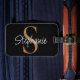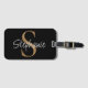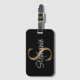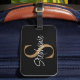 Etiqueta De Bagagem Monogram Elegant Script Name Black Gold