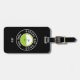 GREENS ARE GOOD FORE YOU! Travel in style with this double-sided golf luggage tag featuring curved white text encircling a red flag on stylized golf greens—all set against a solid black background. The front includes space for three white monogrammed initials, while the back mirrors the design and offers editable fields for your name, phone, address, and email—tastefully accented with a matching golf flag above the contact info.