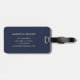 Etiqueta de Bagagem Azul Monograma Marinho Elegante.