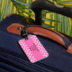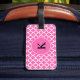 Etiqueta De Bagagem Monograma Branco sobre Padrão Quatrefoil Rosa Quen
