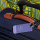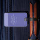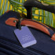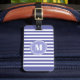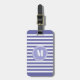 Etiqueta de bagagem de faixa bonito e na moda em tom violeta azul) e padrão listrado branco com o seu círculo de dentro de monograma e abstrato. Fácil de personalizar clicando no botão personalizar.
