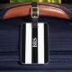 Etiqueta De Bagagem Monograma com três tiras pretas em branco