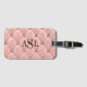 Etiqueta De Bagagem Monograma de Blush Rosa Satin Elegante Metálico