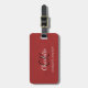 Impressão de couro vermelho como fundo. Personalize e adicione suas letras monográficas, nome próprio e nome do cheio na frente. Sua informação de contato no verso.
