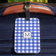 Etiqueta De Bagagem Monograma de Verificação de Gingham Azul