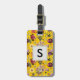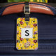 Etiqueta De Bagagem Monograma do padrão floral amarelo Elegante