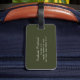 Esta elegante etiqueta de bagagem apresenta uma imagem de fundo da mármore verde-oliva embelezada com veias douradas. Personalize-o com o seu monograma inicial em serifa verde-oliva num retângulo de metal esfregado com dois bordos dourados. Adicione seu nome e informações de contato ao verso em branco sobre um fundo verde-oliva.