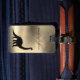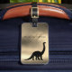 Silhueta de dinossauro na moda simples em combinação com fundo de ouro metálico rústico e monograma personalizado. Etiqueta de bagagem única, moderna, luxuosa e elegante. Todos os elementos gráficos estão livres para mudança!