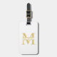 Etiqueta De Bagagem Monograma e Nome Personalizados Branco e Dourado
